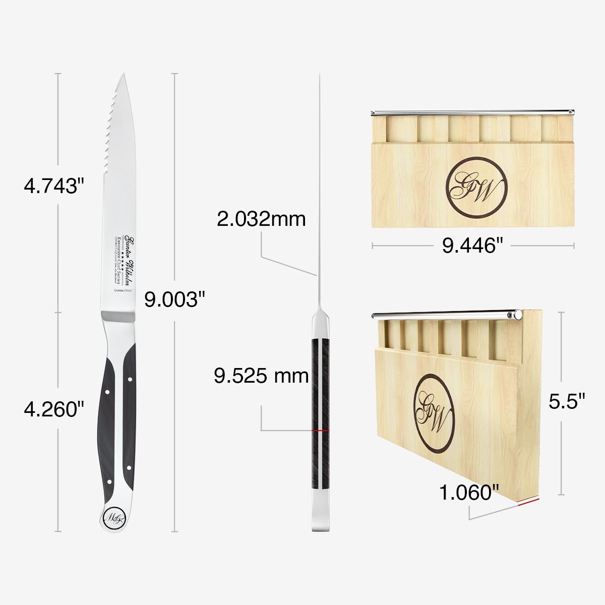 - Steak Knife Wood block with support bar (Can be used as a stand alone)