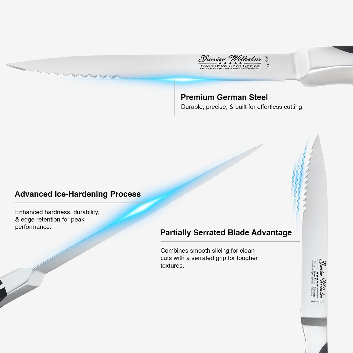 - Optimized multi-stage optimized heat treatment ice-hardening process for hardness, durability, and superior edge retention characteristics.
