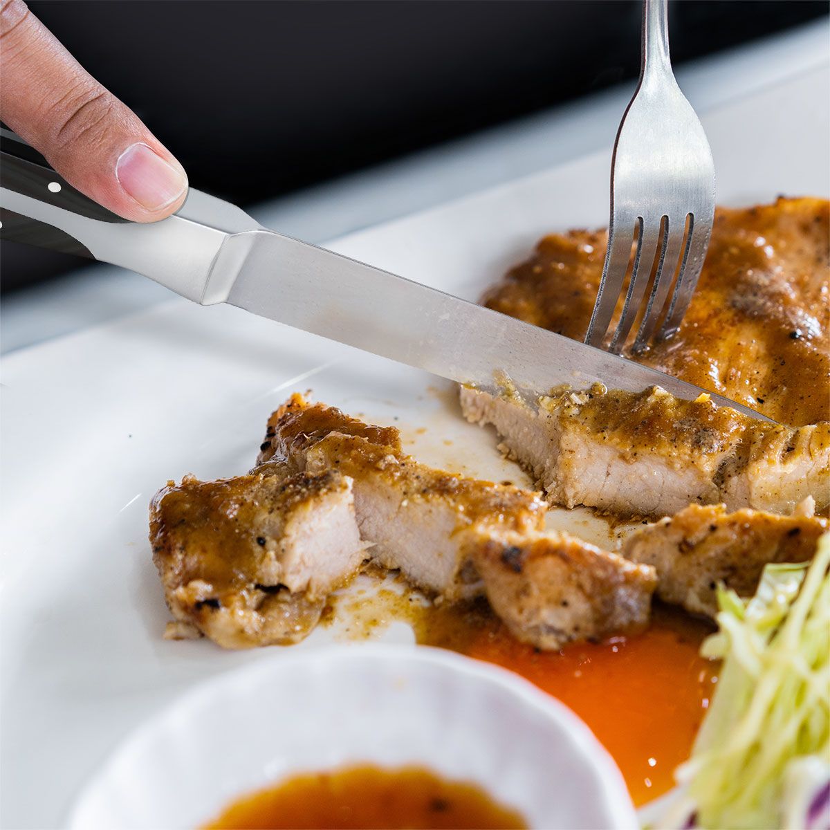 - Maintain the knife's cutting edge by regularly using a honing steel.